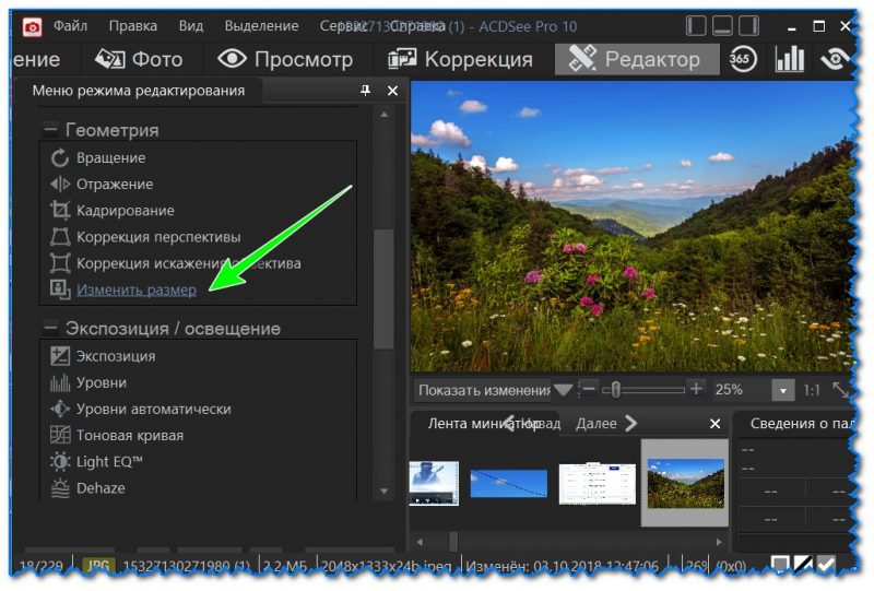 Специализированная и очень мощная программа для обработки фото, картинок. Позволяет легко и быстро не только изменить размер JPG, но и наложить различные интересные эффекты: изменить яркость, убрать «красные» глаза, добавить резкости и т.