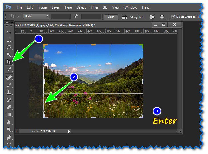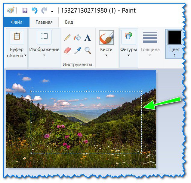Далее вы сможете передвинуть рамочку с любого края картинки (после нажатия на клавишу Enter — картинка будет обрезана). Пример представлен ниже.