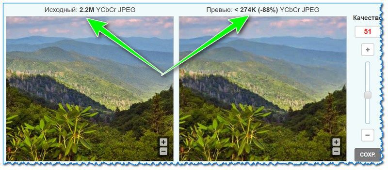 Вы можете воспользоваться онлайн-сервисами для уменьшения объема файла. Они позволяют обработать фотографии популярных форматов и быстро сжать изображение. Инструмент на удаленном сервере поможет решить проблему с графическими изображениями без установки дополнительного софта на ПК, но у этого способа есть свои минусы.