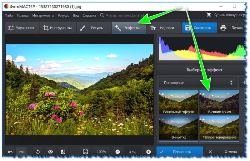 Фото-МАСТЕР очень хорош еще и тем, что кроме кадрирования и изменения ширины/высоты изображения, можно существенно улучшить его цветопередачу, добавить интересных эффектов, чтобы фото заиграло новыми красками.