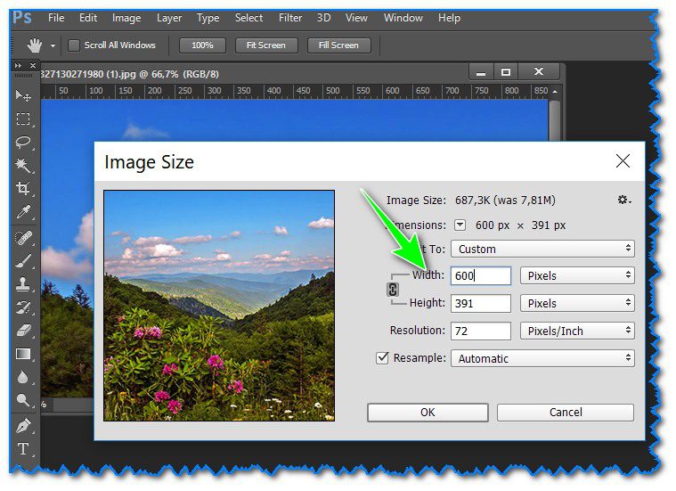 • После этого введите новую ширину и высоту в пикселях, к которым нужно изменить размер изображения.