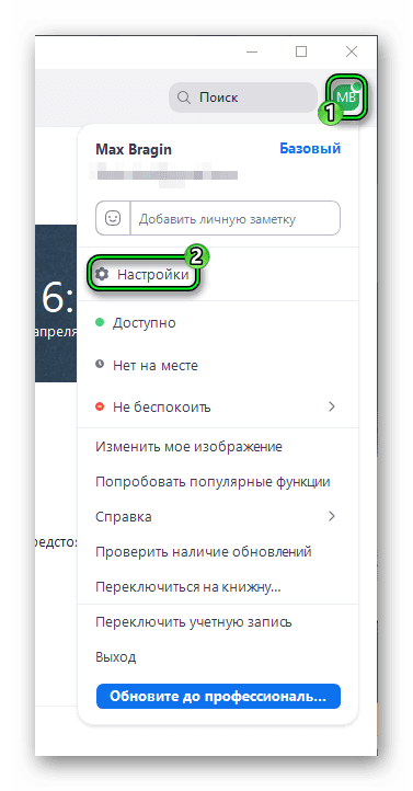- Открывается приложение Зум, и выполняется переход в настройки сервиса.