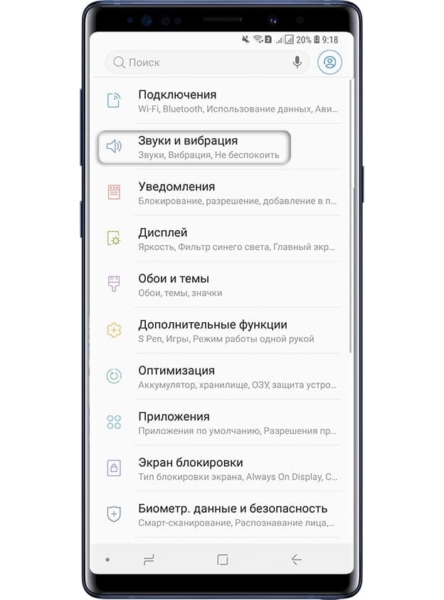 Шаг 2. Выберите пункт Звуки и вибрация.
