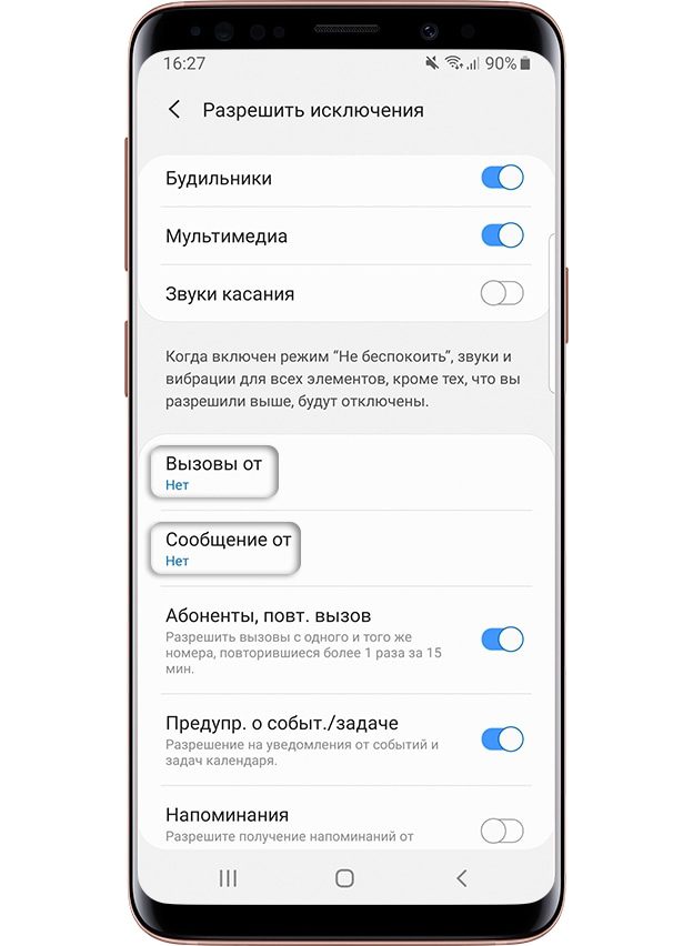 В более новых версиях Android (8. 0/9. 0) это меню может выглядеть несколько иначе. Необходимо открыть раздел настроек «Звуки» и включить режим «Не беспокоить» (причем, среди приоритетных вызовов поставить «Контакты» , пример ниже).