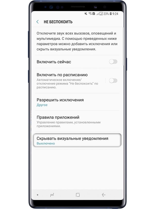 Шаг 6. Вернитесь назад и выберите пункт Скрывать визуальные уведомления.