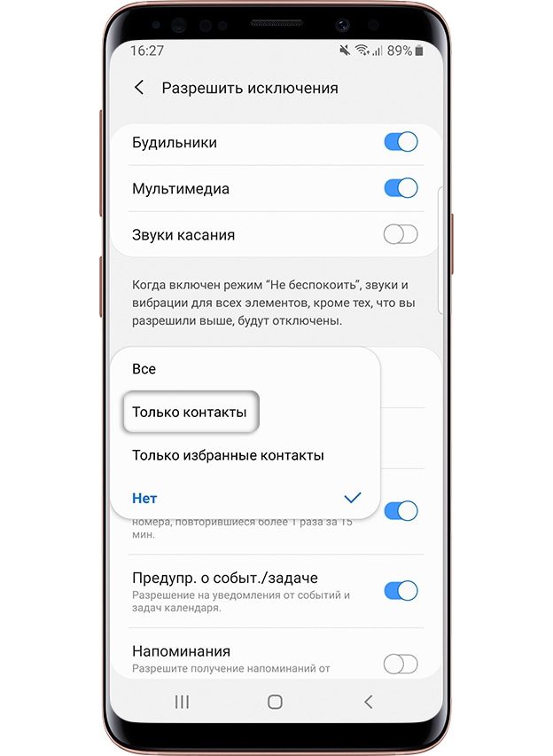 Иногда возникает необходимость получать звонки и сообщения только от тех номеров, которые есть в контактах.