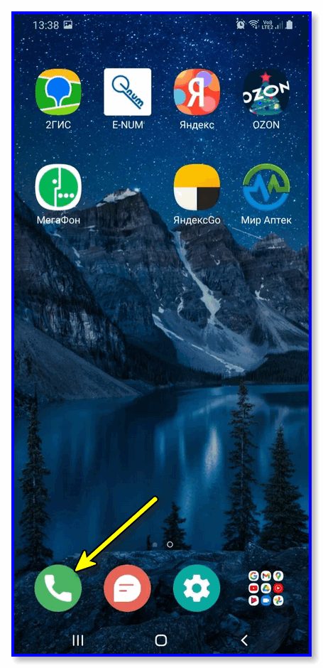 Сначала необходимо найти значок «Телефон» на главном экране телефона, и нажать по нему. В открывшемся окне кликнуть по «трем точкам» для вызова окна настроек. пример ниже. 👇 (актуально для Samsung, LG, Honor и пр