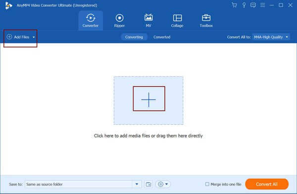 Загрузите Blu-ray Master Video Converter Ultimate и запустите его на своем компьютере. Щелкните значок Добавить файлы или Дополнительная кнопку, чтобы выбрать нужные файлы Premiere Pro.