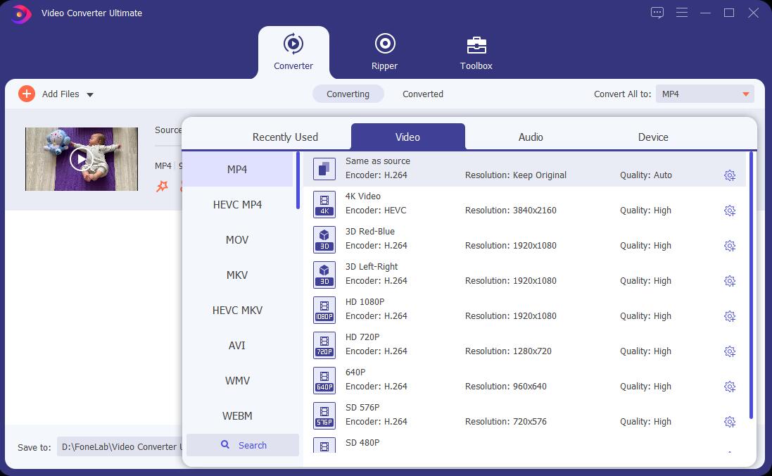 Если вы также хотите конвертировать различные форматы, такие как AVI, MOV и т. , В MP4, вы не должны пропустить FoneLab Video Converter Ultimate.