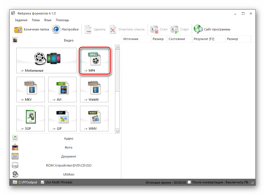 - Поддержка широкого спектра форматов вывода, включая MP4, MP3 и т. Д.