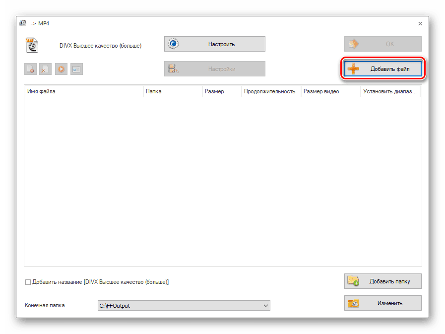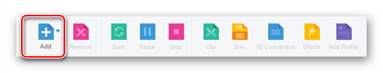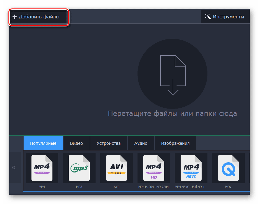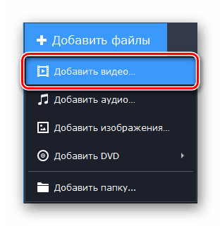 Видео также можно открыть при помощи меню «Добавить файлы».