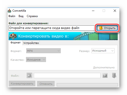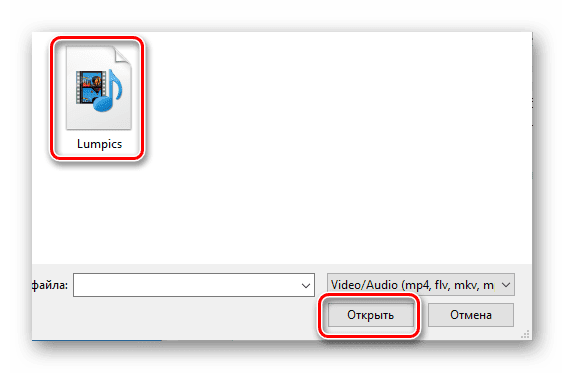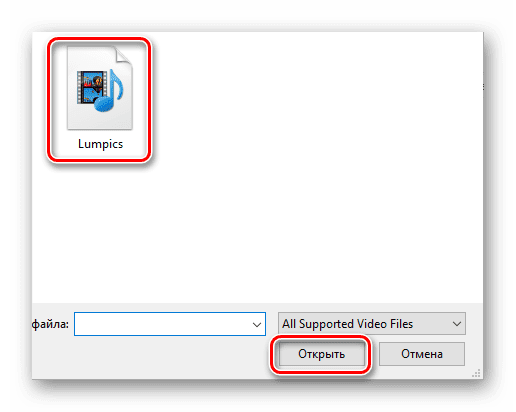 Еще один способом открытия является последовательное нажатие на надписи «Файл» и «Добавить видео».