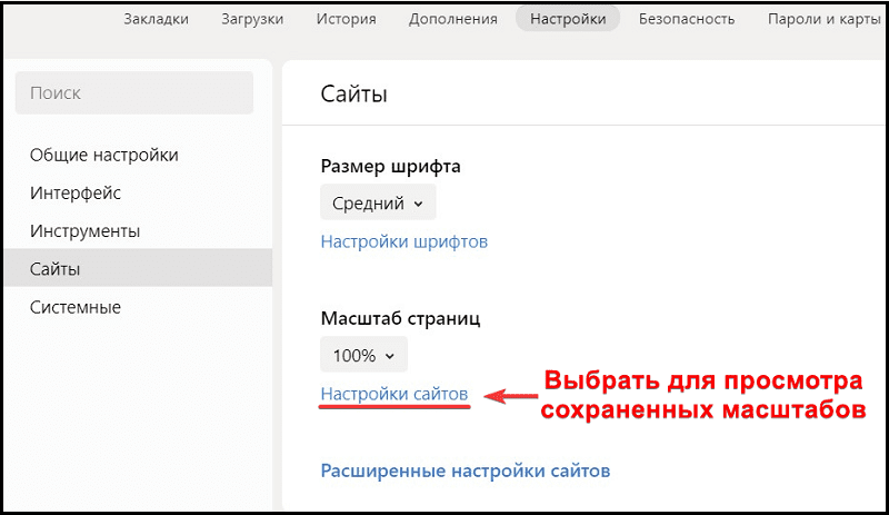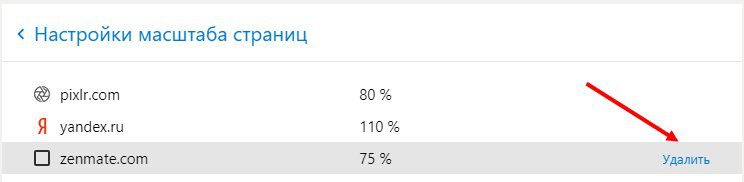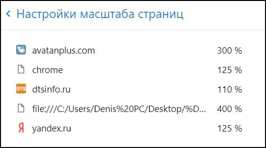 то в ней вы можете увидеть список сайтов, для которых вы установили разный масштаб