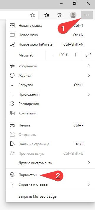 Откройте Параметры и прочее «⋯» (ALT + F) в правом верхнем углу браузера и выберите вкладку «Параметры»
