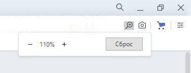 В адресной строке справа, нажав на значок масштабирования, вы можете увидеть текущий уровень масштабирования. Можете сбросить по умолчанию на 100%, увеличить или уменьшить масштаб текущий веб-страницы.