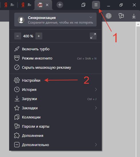 Откройте настройки браузера « ≡ » и выберите вкладку «Настройки»