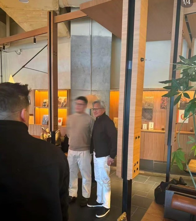 • В Пекине: Дженсен Хуанг выбрал для обеда ресторан юньнаньской кухни в торговом центре WF Central (Wangfu Central). Одетый в свою фирменную черную кожаную куртку, он охотно фотографировался с посетителями и поддерживал беседу.