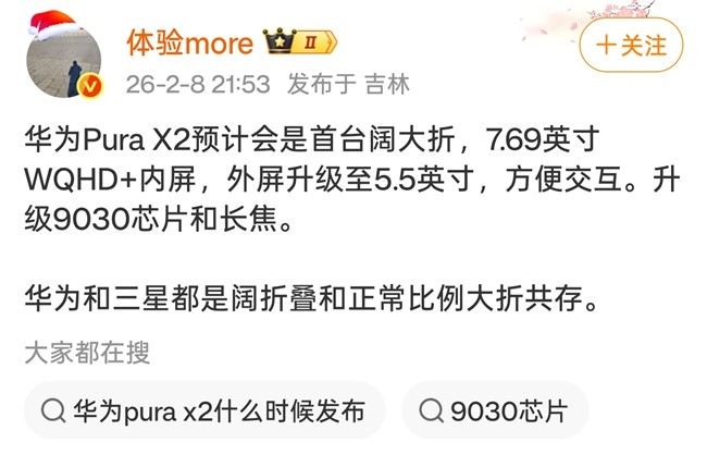 Huawei Pura X2: широкий складной смартфон дебютирует в марте 2026