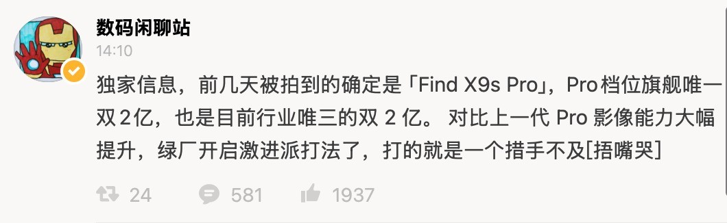 Смартфон OPPO Find X9s Pro получит сразу две камеры по 200 Мп