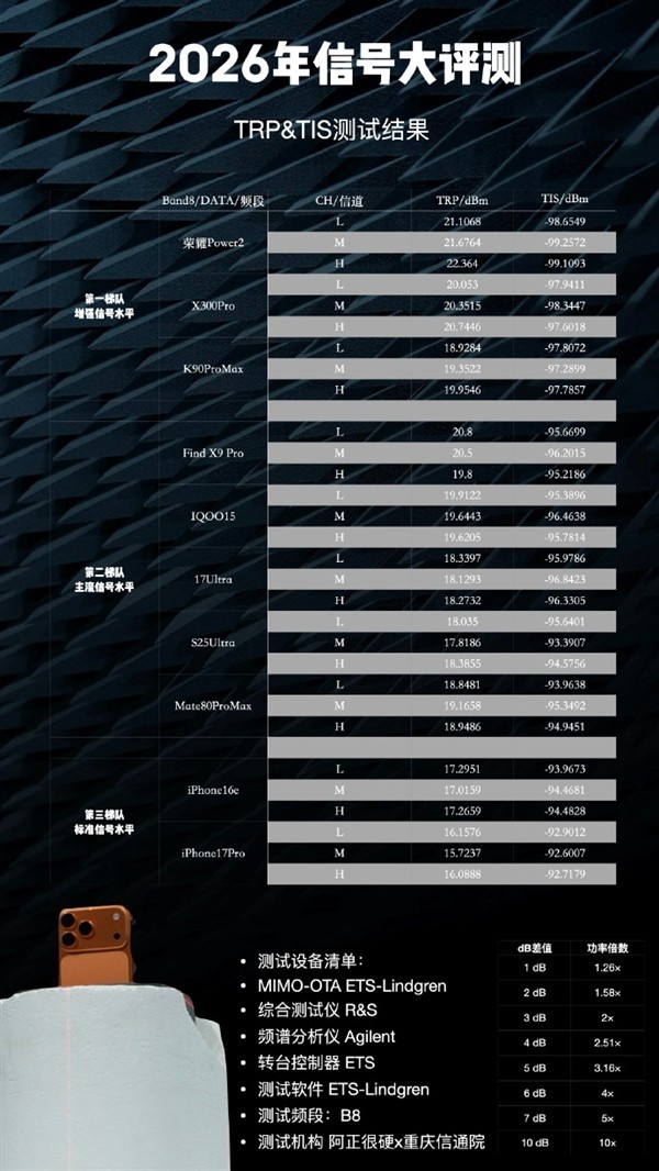 Специалисты провели комплексное тестирование актуальных мобильных устройств, используя международные стандарты оценки радиочастотных характеристик. В основу анализа легли два ключевых параметра: TRP (Total Radiated Power — общая излучаемая мощность) и TIS (Total Isotropic Sensitivity — общая изоляптропная чувствительность). Если говорить простыми словами, первый показатель отвечает за то, насколько эффективно смартфон передает сигнал на базовую станцию, а второй — насколько хорошо он «слышит» сеть в сложных условиях.